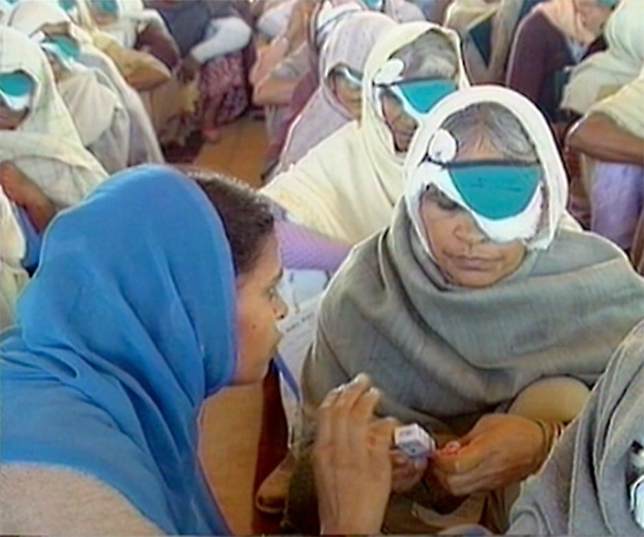 In India many people are blind due to cataracts, which in most cases can be cured by a simple operation. In 1965 Maharaj Charan Singh started the first Dera Eye Camp to help people suffering from cataracts who did not have access to medical treatment regardless of their caste, religion, colour, or social distinctions. During the many years that the Eye Camps were held, from 1965 to 2002, nearly 59,000 people underwent successful operations. The Radha Soami Trust Beas covered the entire cost of the camps. The last Dera Eye Camp, held in November 1989, was documented with both a photographic book and a 44-minute film.